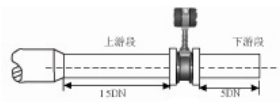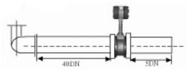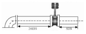 3.彎管的安裝: 如果流量計的前端有90°彎頭或T型接頭,要保證流量計的前直管段≥15D,后直管段≥5D |